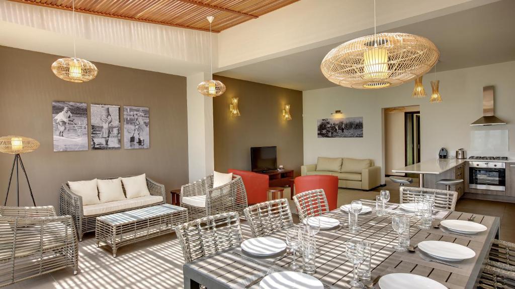 Les villas en bord de mer sont climatisées et dotées d'un jardin privé et clos avec une piscine privée. Chacune comprend un coin salon, qui s'ouvre sur une terrasse, et une cuisine entièrement équipée. La salle de bains privative est pourvue d'une baignoire et d'une douche.